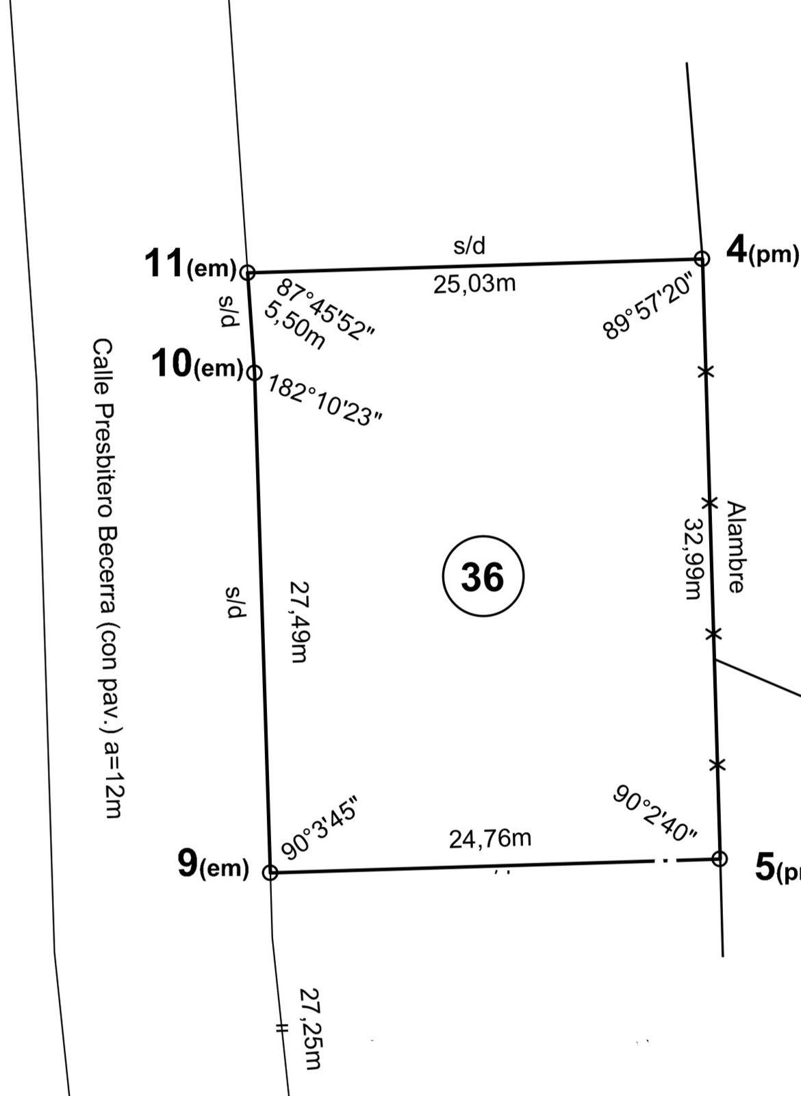 SUPERFICIE: 818MTS – Medidas: 27.49mts x 25mts, lote alambrado perimetral con tejido romboidal y parquizado.